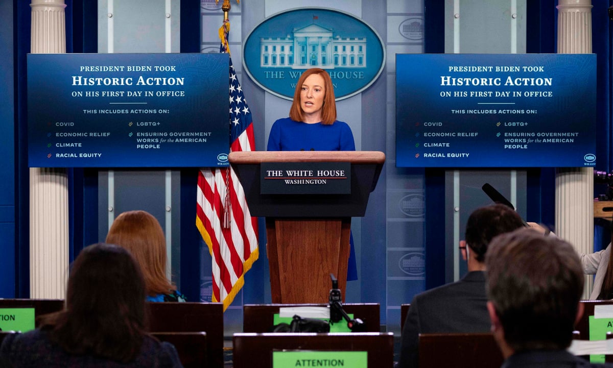 Jen Psaki S First White House Press Briefing Heralds Return To Normality Biden Administration The Guardian